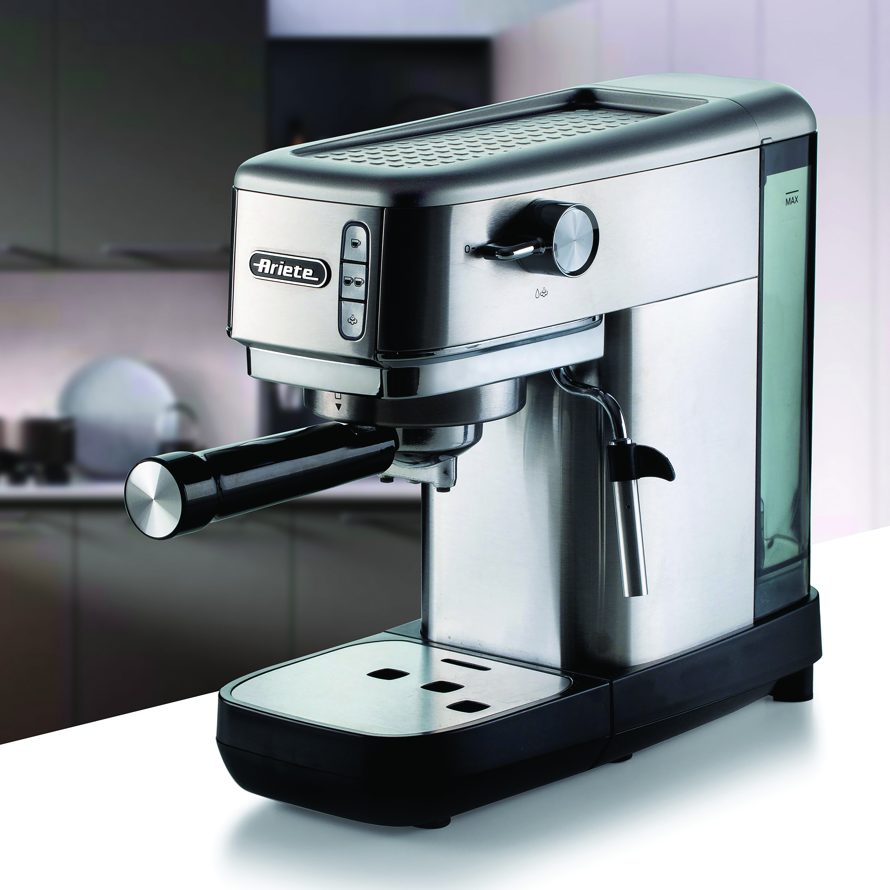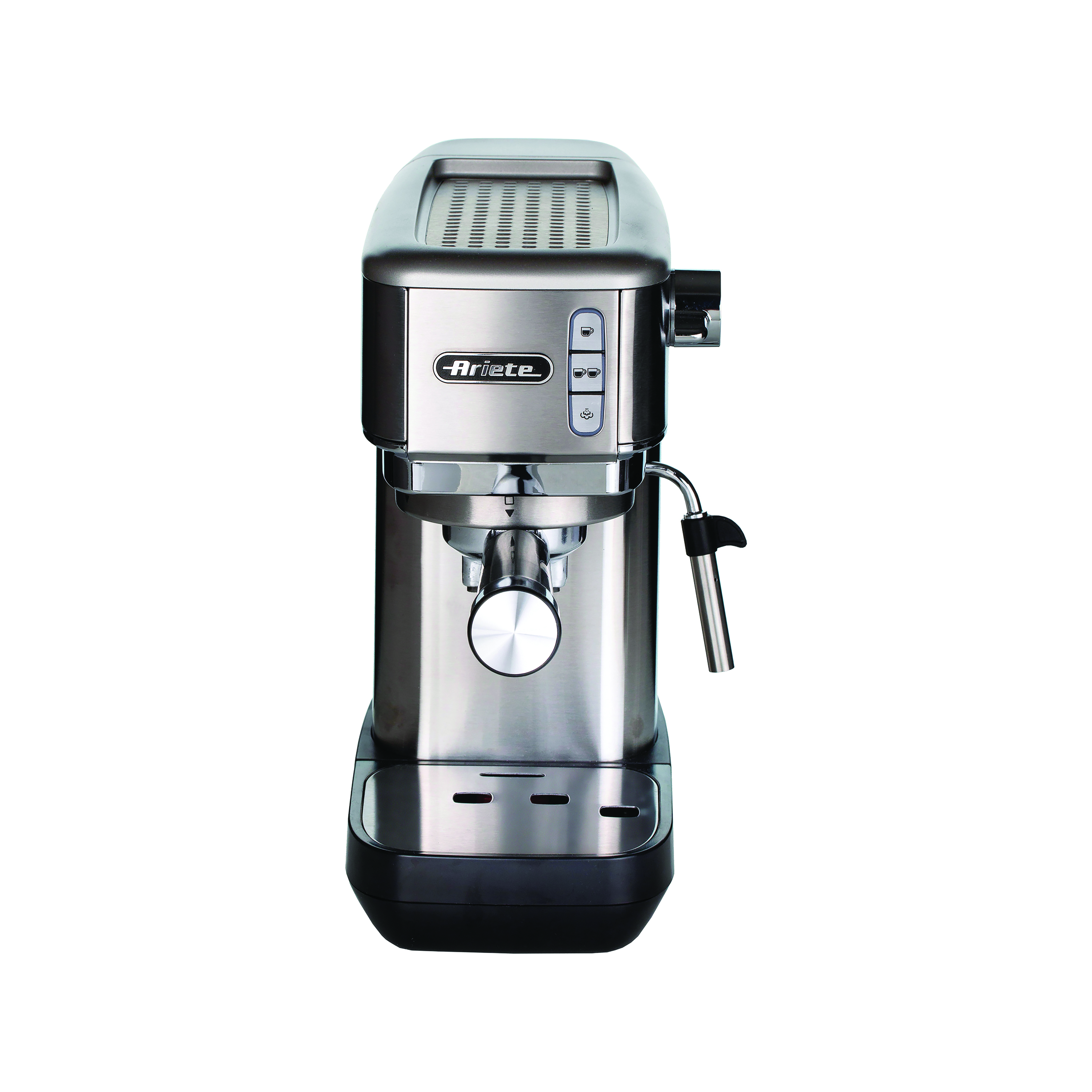 This narrow espresso coffee machine from Ariete is the perfect solution for people that want a modern, high-level, quality espresso machine and the pleasure of a dense, aromatic, creamy coffee. For coffee powder and ESE pods. The design of Ariete 1380 is completely new, entirely designed by Ariete and Italian designers. The machine is made of Stainless steel and is only 140mm wide. With a removable 1.1 litre water tank. This high-performance product is easy to use thanks to the control panels, with 3 capacity buttons having LED lights. With a removable drip tray this machine allows you to prepare, without any problem, the classic and the long espresso. The Maxi Cappuccino device can easily froth milk to 'stain' the espresso or prepare a creamy cappuccino. Can also dispense hot water in just a few moments for tea, infusions and herbal teas.