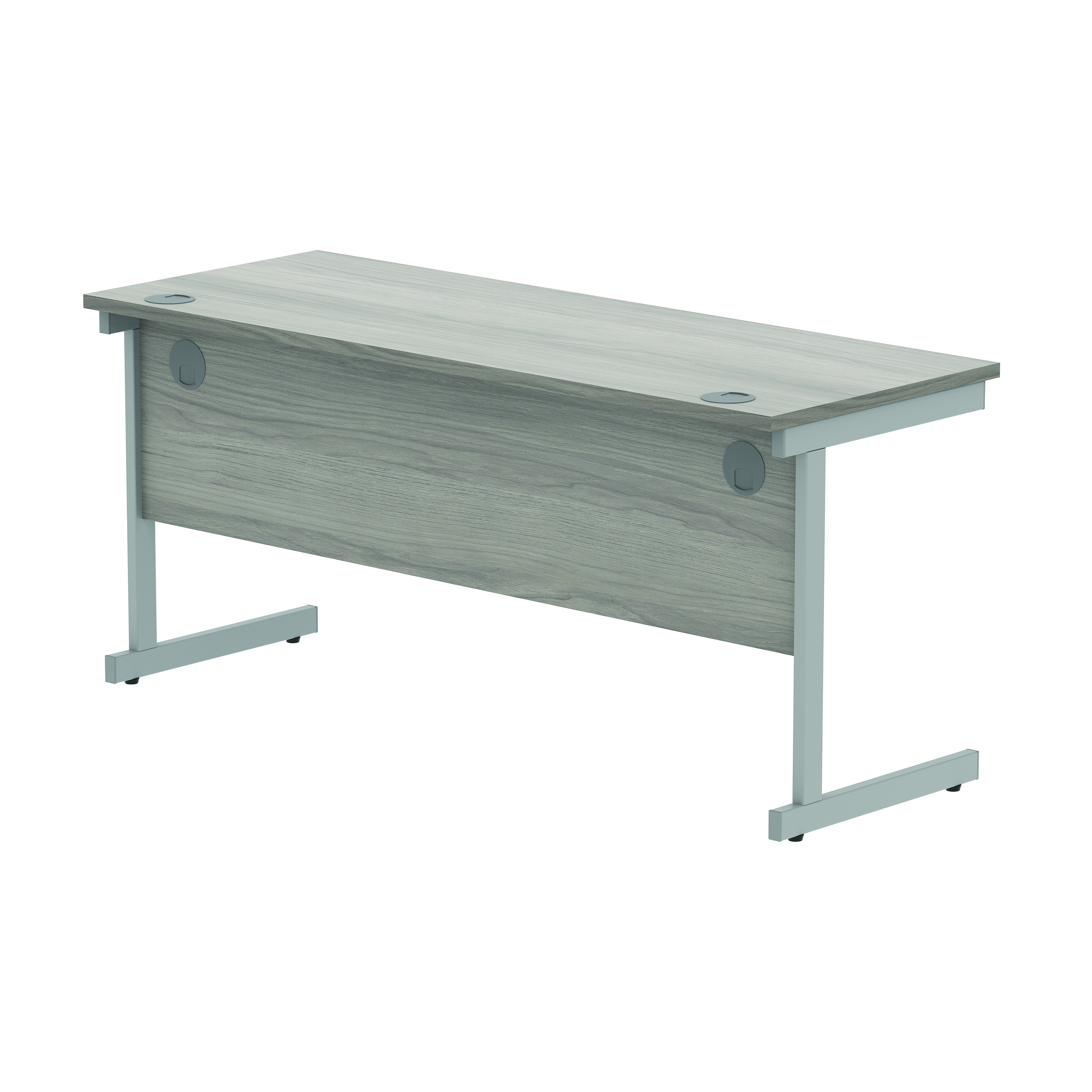 Astin Rectangular Single Upright Cantilever Desk 1600x600x730mm Alaskan Grey Oak/Silver KF803667