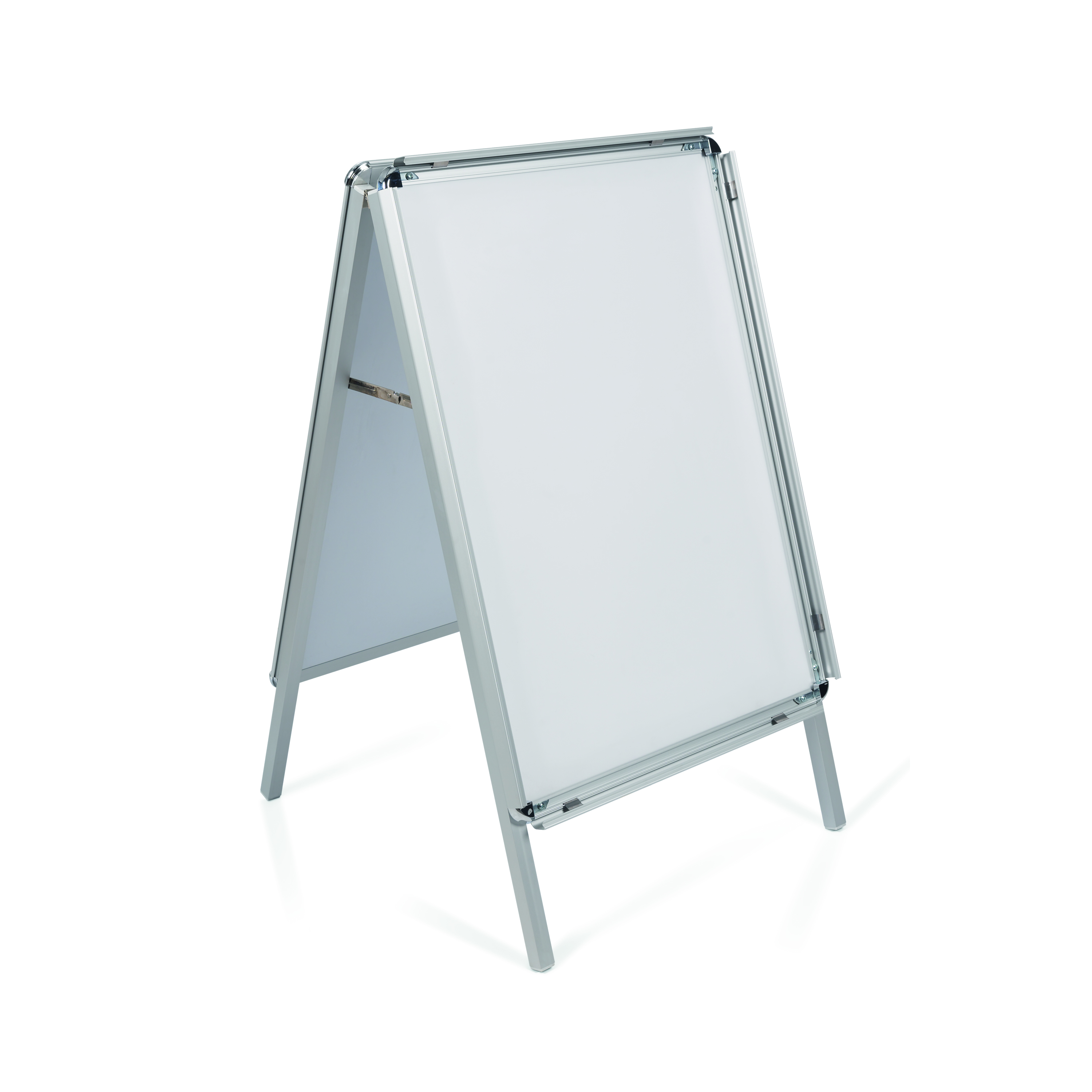 Show information and promote your business and services in public spaces, in both directions, with the Bi-Office A-Frame double sided Poster Display. its easy to use, just lift the 4 aluminium trim edges, remove the PVC cover sheet and insert the poster. Designed for frequent use, they are durable and also stand strong and stable when in use. The clear anti-glare PVC sheets hold your poster in place and protect it from the elements, ensuring it stays in good condition. Its portable and foldable design means you can fold and store it without taking up too much room. Designed for frequent use, this useful structure is available in 2 different sizes.