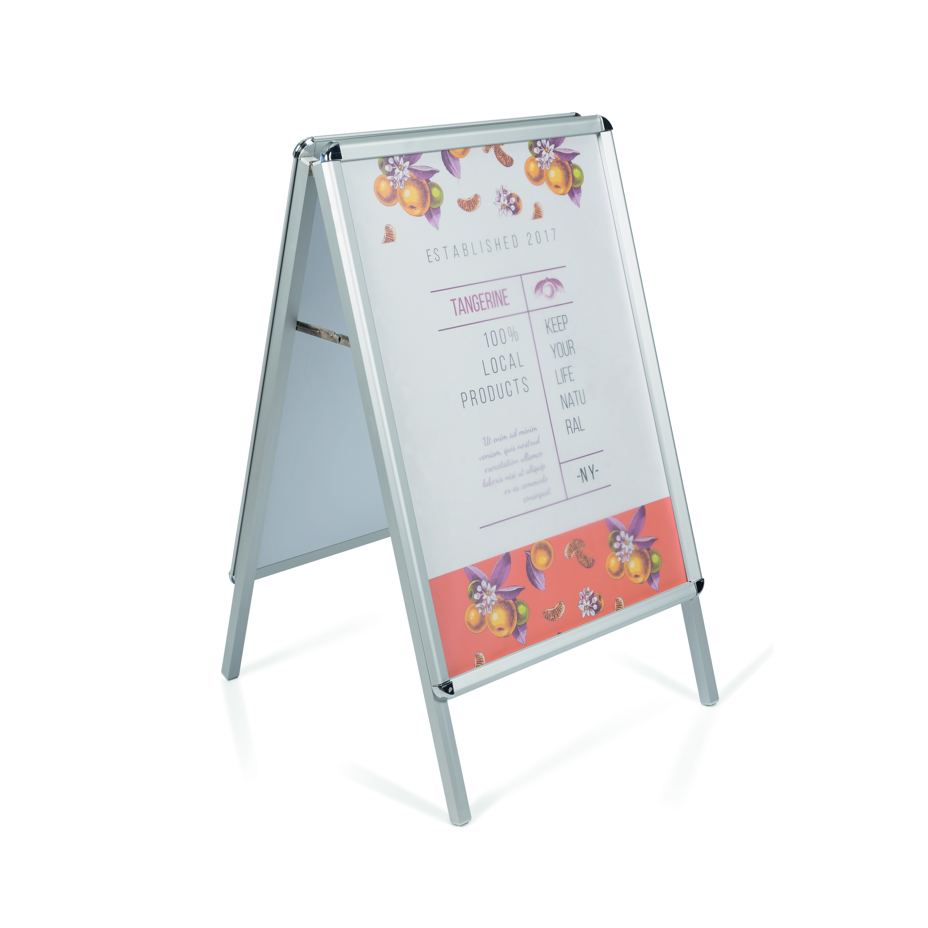 - Promote your business in public spaces with this A-frame double-sided poster display
