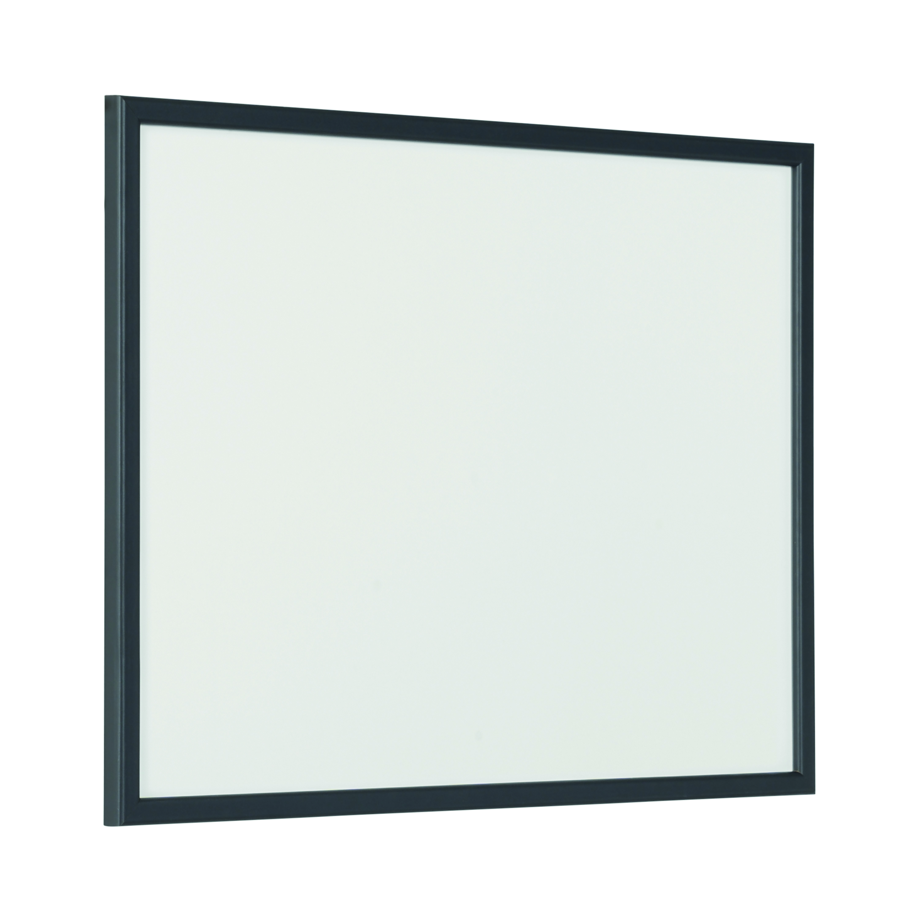 - Write, erase and rewrite on this small black-framed whiteboard