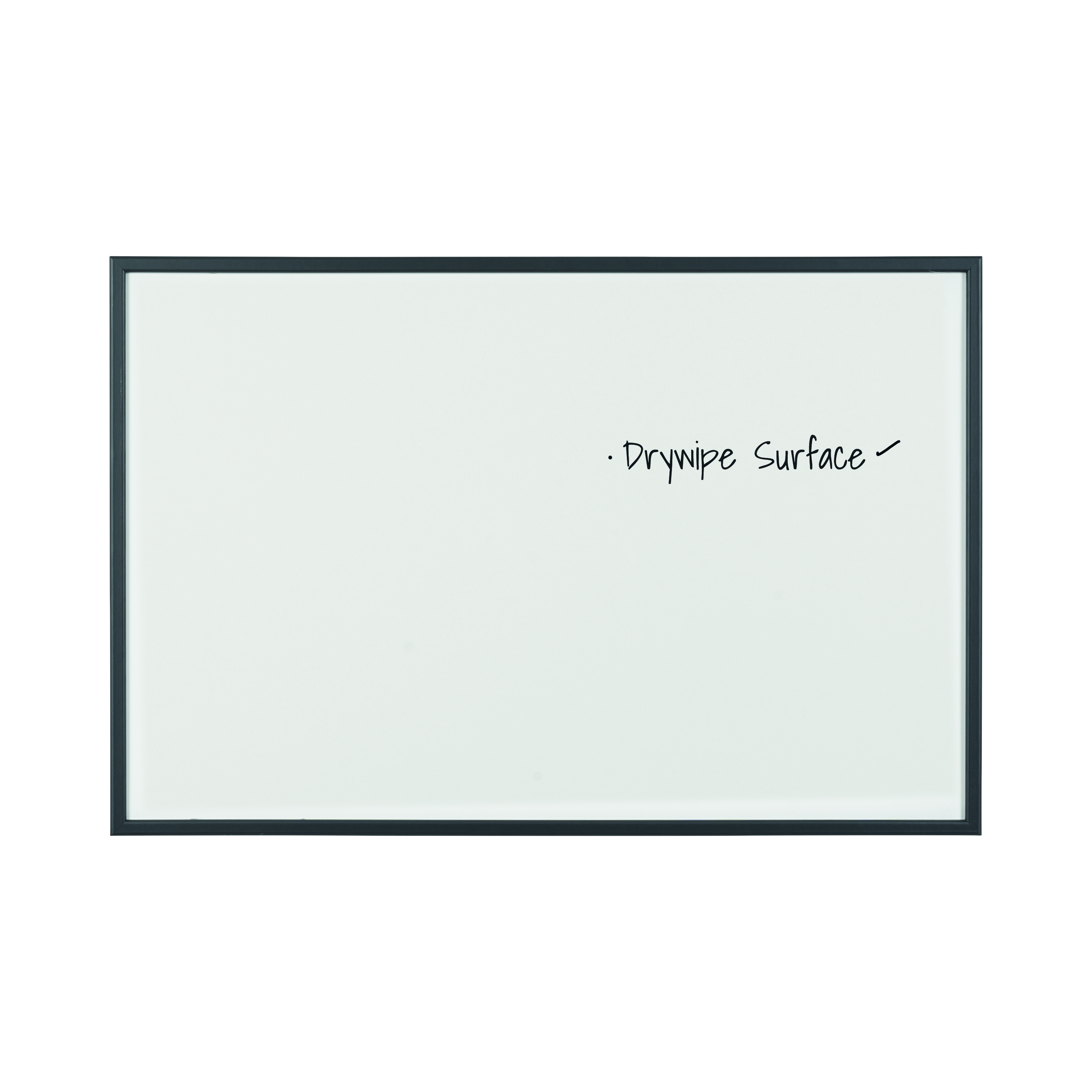 - Write, erase and rewrite on this midsized black-framed whiteboard