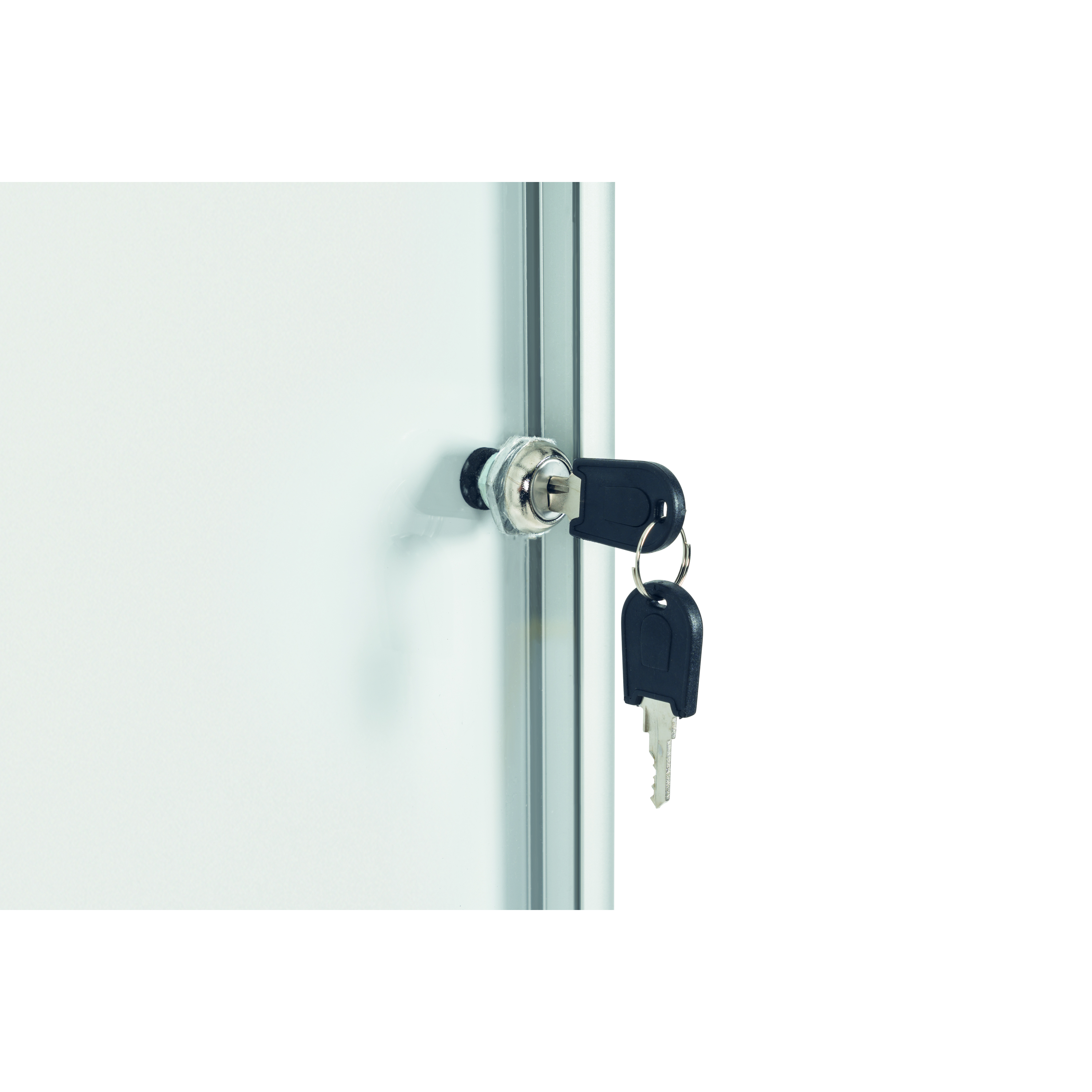 Bi-Office Enclore lockable display cases are ideal to display important messages in corridors, schools or common areas. Make sure everyone is on the same page and acknowledges important information or any tasks that need to be considered. Add colour to increase the usability and perception of the display case. This is a strong, secure, and lightweight solution to display important notes, pictures, and so on, in the common areas of labs, schools, and other public spaces. The frame is made of aluminium, with rounded corners for increased safety. There is clear visibility of the displayed items due to the swinging acrylic door, which can be locked to protect the inside materials from hampering, manipulation, or the weather. This lockable board comes with 2 keys, so you can keep a key in a safe location, to use as a spare if the other one gets lost. The set also includes a wall mount kit for easy installation.