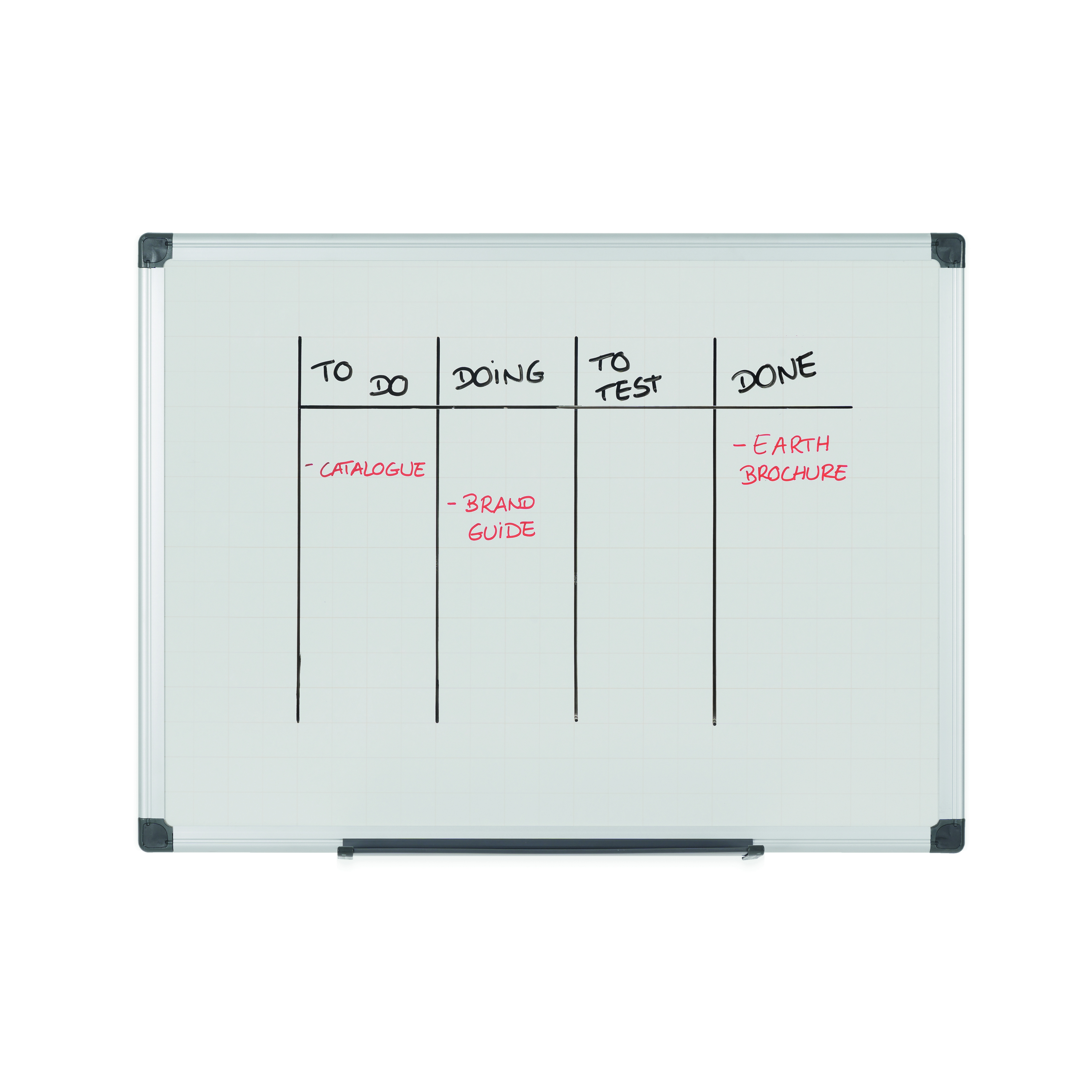 Make your meetings, lessons, conferences, and training sessions more dynamic and engaging with the Bi-Office Maya Whiteboard. its a user-friendly and all-purpose solution to promote effective communication, the key to success. The non-magnetic dry-wipe surface is easy to write on and clean, suitable for moderate use (5-year warranty). Meet your specific needs with this two-sided, plain, and gridded board. Grids allow straighter writing and help create charts and graphs. You can write and draw, erase it and do it all over again. Brainstorm ideas and plan. Better explain a subject and let creativity flow. Use it as a chores board and write down memos. All in one place. This whiteboard is compatible with dry-wipe markers, erasers, and wipes, and includes a clip-on tray to hold accessories. Plus, it can be horizontal or vertical wall-mounted, so its a great option to save room space.