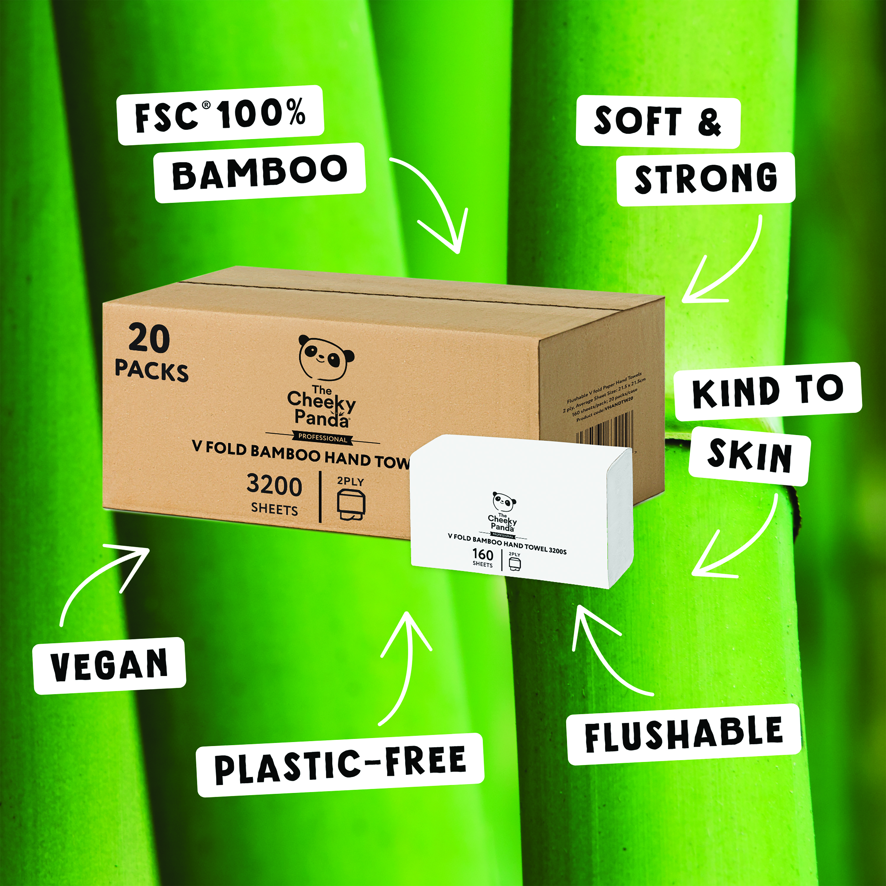 Cheeky Panda 2-Ply V-Fold Bamboo Hand Towel 160 Sheets White (Pack of 20) VHANDTW20