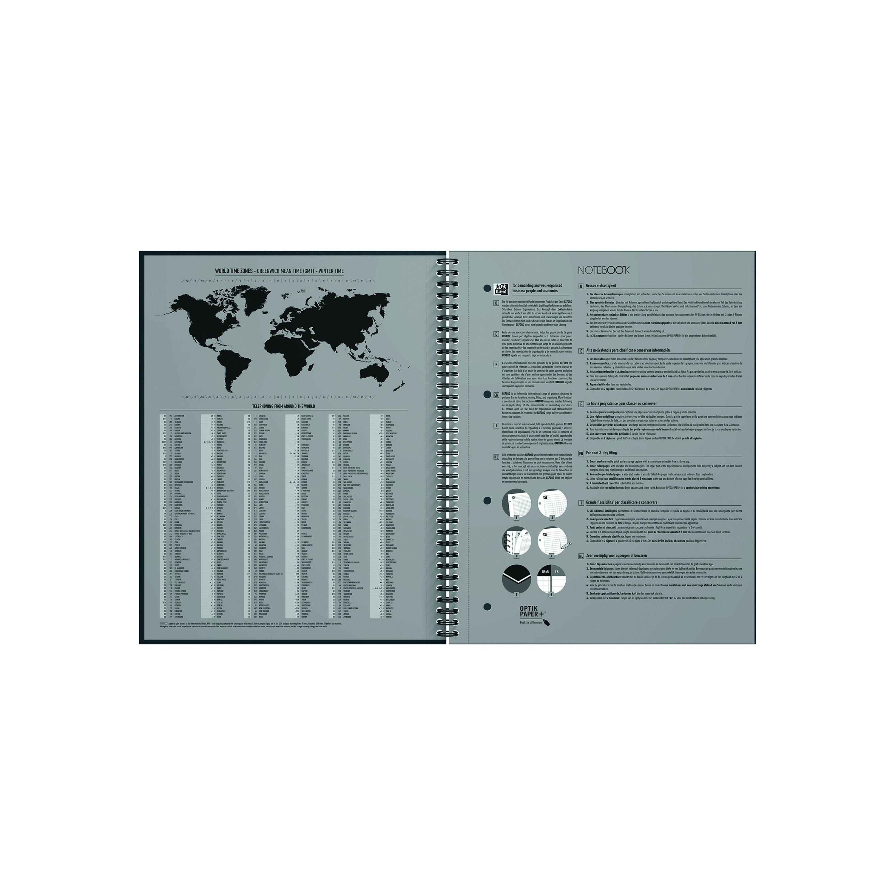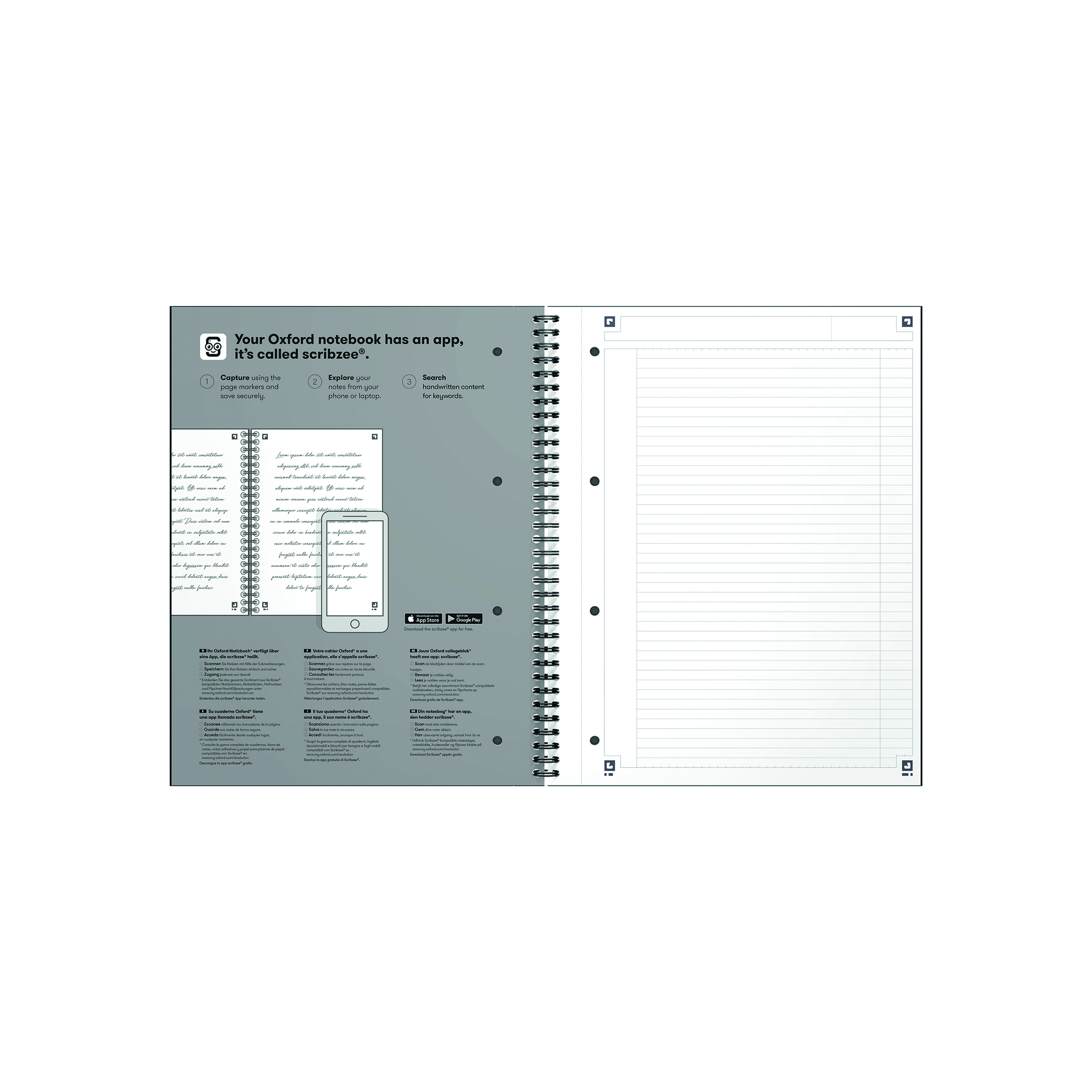 The classic, Special Edition, Oxford hard cover wire bound notebook features smart-ruled pages with a multipurpose header for recording subject or meeting titles and the date as well as double margins for highlighting valuable information. This A4+ notebook contains 160 micro-perforated and pre-punched pages which can easily be removed and filed into a binder at A4 size. Containing smooth white Optik Paper so it can be written on both sides of the page, it is also Scribzee enabled so by using the Oxford Scribzee app, you can scan, save and share your notes.
