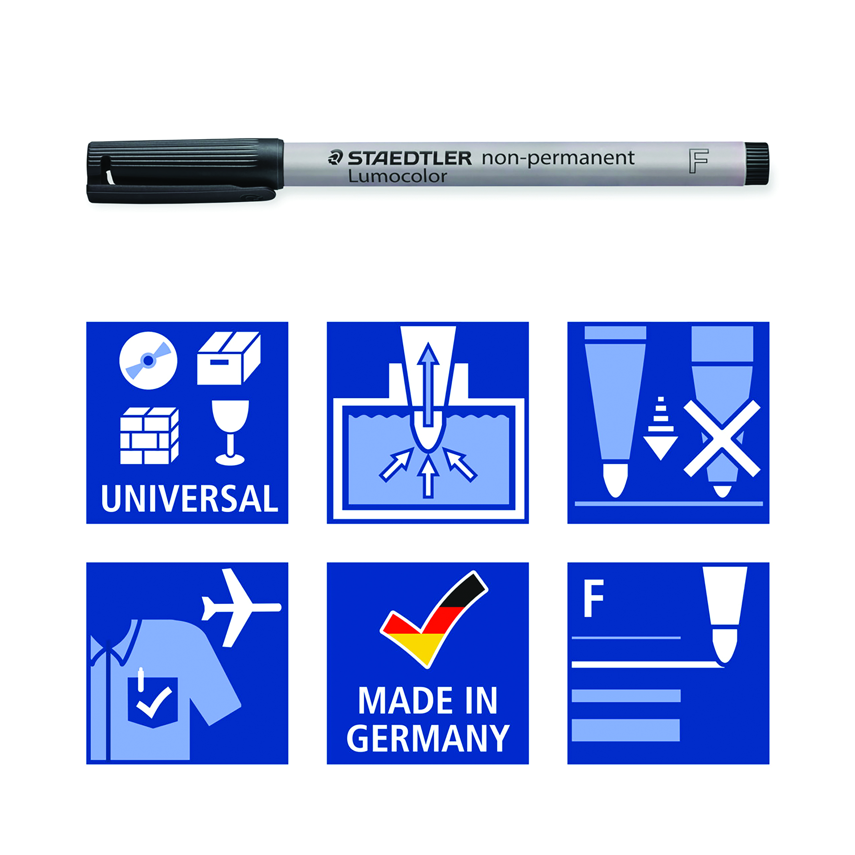 Staedtler Lumocolor Non-Permanent Universal Pen Fine 0.6mm (Pack of 10) Black 316-9